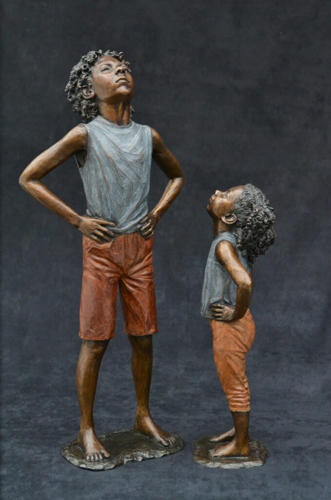 My niece and nephew inspired and modeled for the piece, but it reminds me most of the power dynamics between my brother and myself when we were their age and how it changed over time.